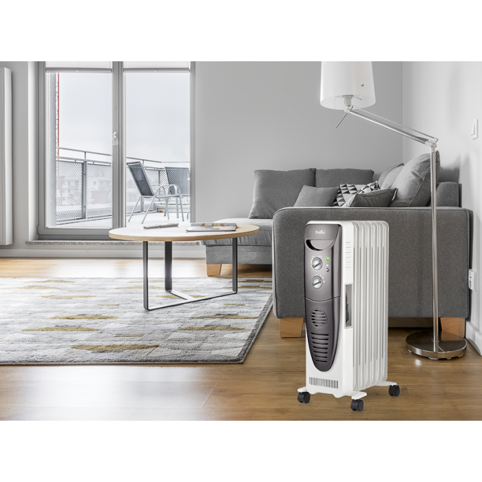Маслонаполненные радиаторы BALLU серии Turbo – сверхэффективные обогреватели, сочетающие в себе одновременно два максимально эффективных типа обогревательных приборов – маслонаполненного обогревателя и керамического тепловентилятора. Комбинированный способ обогрева, применённый в серии Turbo, максимально эффективен в случаях когда, нужно согреться в очень короткий срок и при этом обогрев помещения продолжался продолжительное время. Керамический тепловентилятор, мощностью – 400 Вт, мгновенно выйдет на максимальную мощность работы и в кротчайшие сроки обогреет помещение, а эффект естественной конвекции от обогрева маслонаполненного обогревателя, эффективно продолжит поддерживать в помещении комфортную температуру. Таким образом происходит максимально рациональный обогрев помещения в очень короткие сроки. Сверхнадежный термостат нового поколения автоматически поддержит температуру в помещении а антикоррозийная состав которым покрыты маслонаполненные радиаторы серии Turbo защитят приборы от негативного воздействия внешней среды.