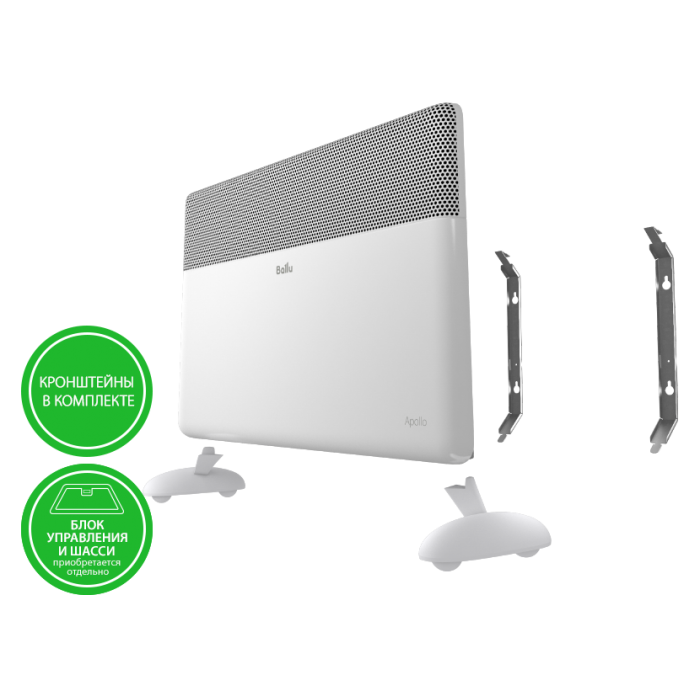 Для работы конвектора Apollo необходимо обязательно выбрать один из трех блоков управления и при необходимости напольной установки – шасси.