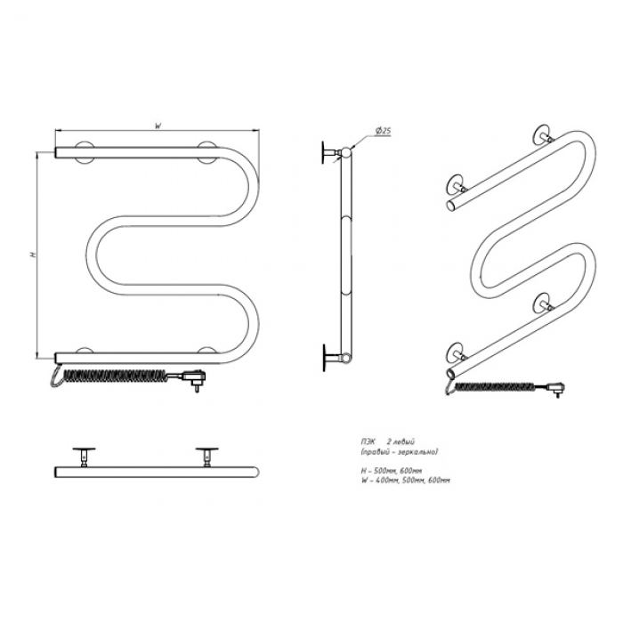Полотенцесушитель ТРУГОР электрический ПЭК 2 50х50 М-образный (138 Вт )