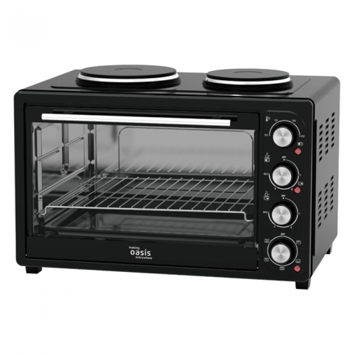 Мини-печь making Oasis everywhere - компактное кухонное устройство, которое заменяет собой громоздкий духовой шкаф. Этот вариант идеален, если у вас небольшая кухня, в которой ценится любое свободное пространство. При этом мини-печь не уступает стандартной духовке в функциональности.Мини-печь может использоваться для приготовления пиццы, жаркого, выпечки хлеба и многого другого. Внутреннее освещение позволяет легко наблюдать за процессом приготовления пищи. Благодаря встроенному таймеру на 90 минут вам не нужно беспокоиться о том, чтобы следить за временем.Старайтесь мыть духовку после каждого использования, так жир отчищается гораздо легче. Стенки прибора следует очищать влажной тряпкой или губкой с использованием мягкого моющего средства. Не используйте едкие вещества, а также стальные мочалки или другие металлические приборы.Мощный нагрев 1500+700/1000 Вт2 конфорки разного диаметраМаксимальная температура 250°СЭмалированная износостойкая внутренняя поверхностьФункция конвекцииПротиверь и решётка в комплекте2в1 - варочная панель и печь