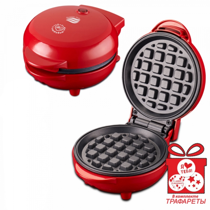 Вафельница электрическая Кубань-7 красная, диаметр 12,5см, 550Вт