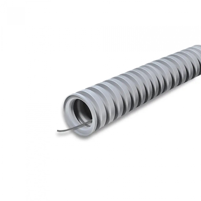 Труба гофрированная ПВХ с зондом Ф16 100м (бухта) "Идеал", 002 Светло-серый