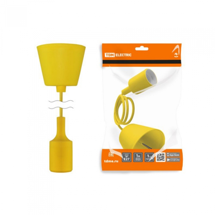 Патрон пластиковый Е27 с подвесом 1 м, желтый TDM (SQ0335-0065)