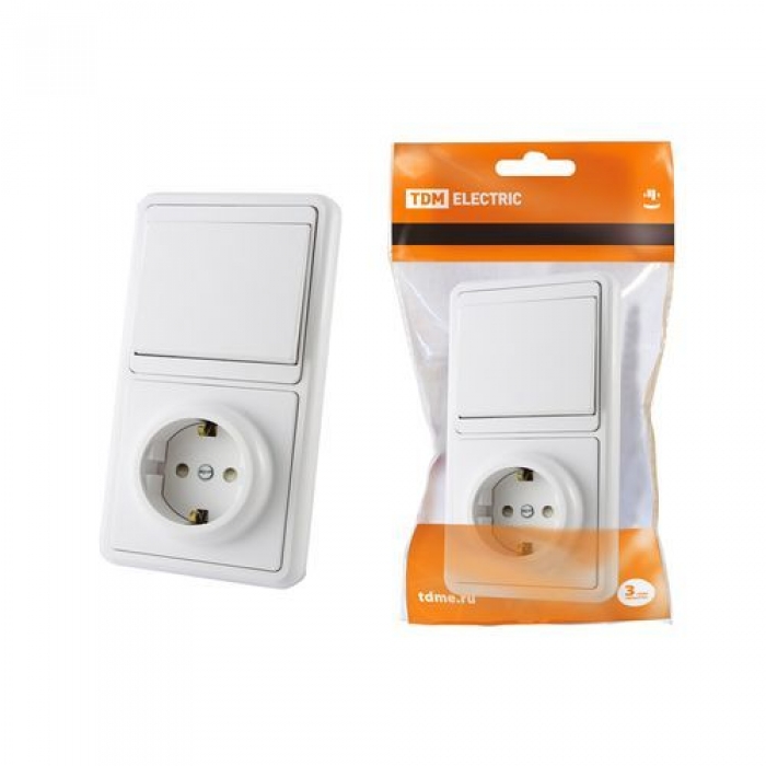 Блок комбинированный БКВР 1-но кл. выкл + розетка 2П+3 с з/ш "TDM" (SQ1813-0001)