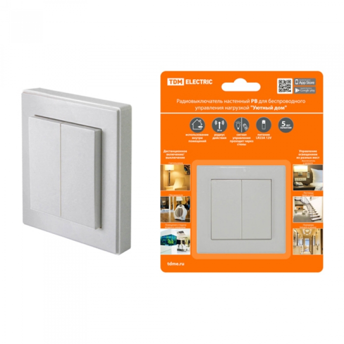 Радиовыключатель настенный РВ2 (2 клавишный) для беспроводного управления нагрузкой "Уютный дом" TDM