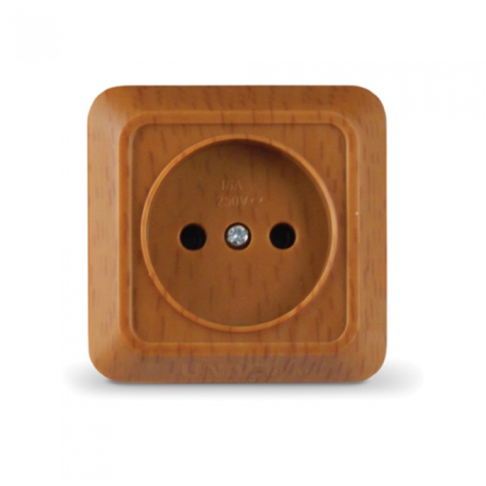 Розетка одноместная "UNIVersal" серия "Олимп" б/з, о/у, 16А, 220В, бук (венге) (еврослот) (E2314)