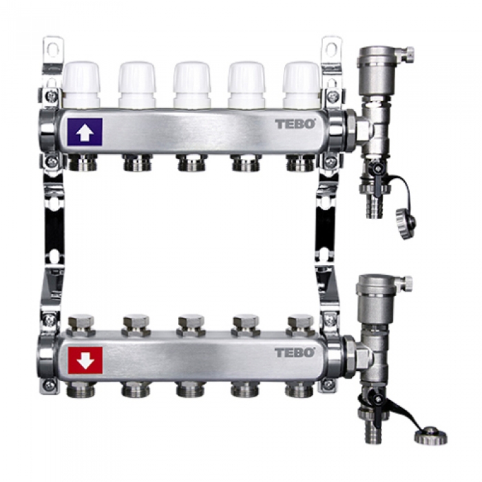 Коллекторная группа Tebo 1" х 11х3/4" дренажный кран и воздухоотвод, сталь (14)