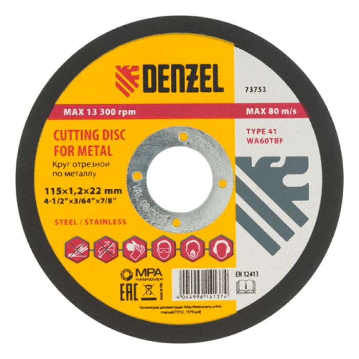 Круг отрезной по металлу, 115 х 1,2 х 22,2 мм, WA60TBF// Denzel арт.73753