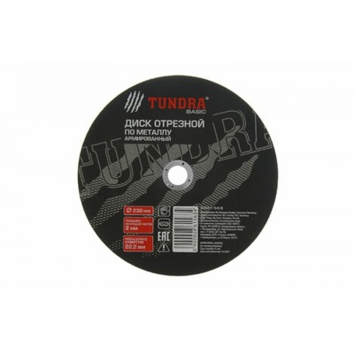 Круг отрезной по металлу ТУНДРА, армированный, 230 х 2.0 х 22 мм 2861563