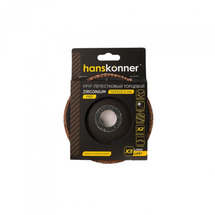 Круг зачистной лепестковый ЦИРКОНИЕВЫЙ Hanskonner 125х22 H9010-01-125x22-60ZTC зерно 60
