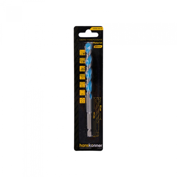 Сверло универсальное Hanskonner 10мм H1055-08-10 твердосплавная напайка, шестигр. хвостовик