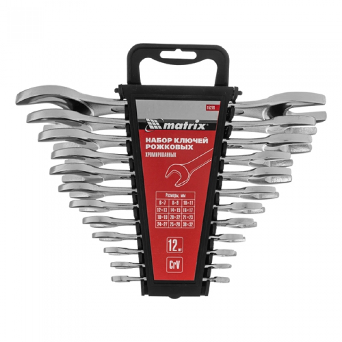 Набор ключей рожковых, 6 х 32 мм, 12 шт., CrV, хромированные// Matrix арт.15278