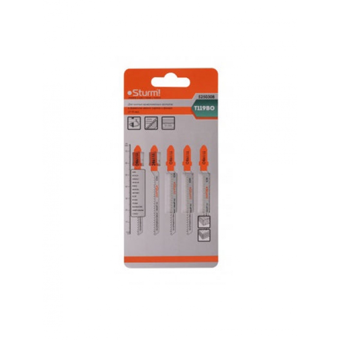 5250308 Пилки для лобзика Sturm! T119BO 5шт криволинейн. чистый рез, 2-15 мм, фанера, пластик