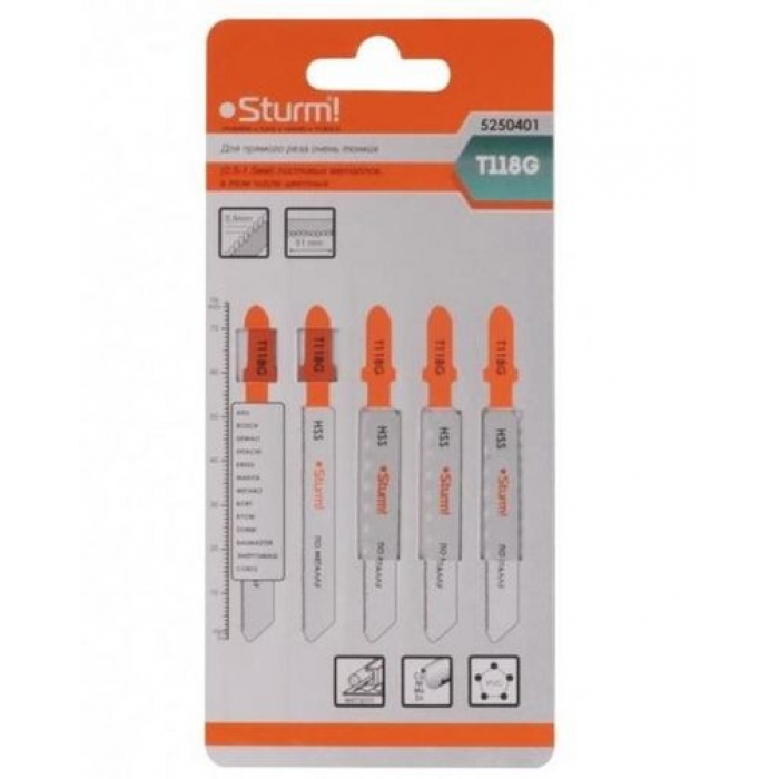 5250401 Пилки для лобзика Sturm! по металлу T118G 5шт, для тонких цветных металлов