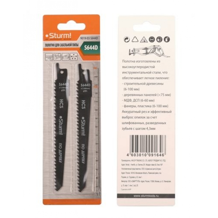 9019-03-S644D Полотно для сабельной пилы ДЕРЕВО 2шт 150/4мм (дерево,МДФ,пластик,фанера) Sturm!