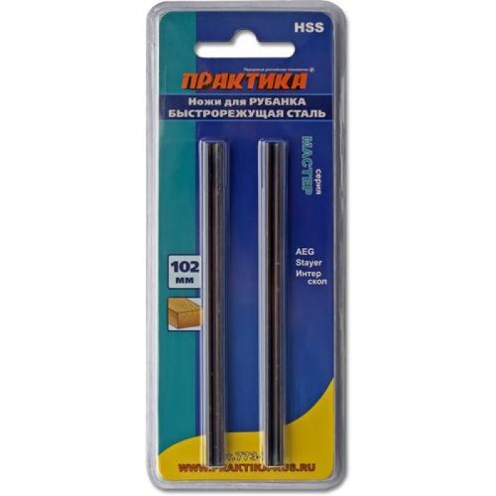 Нож для рубанка ПРАКТИКА 102 мм х 5,5 мм, быстрорежущая сталь, (2 шт )