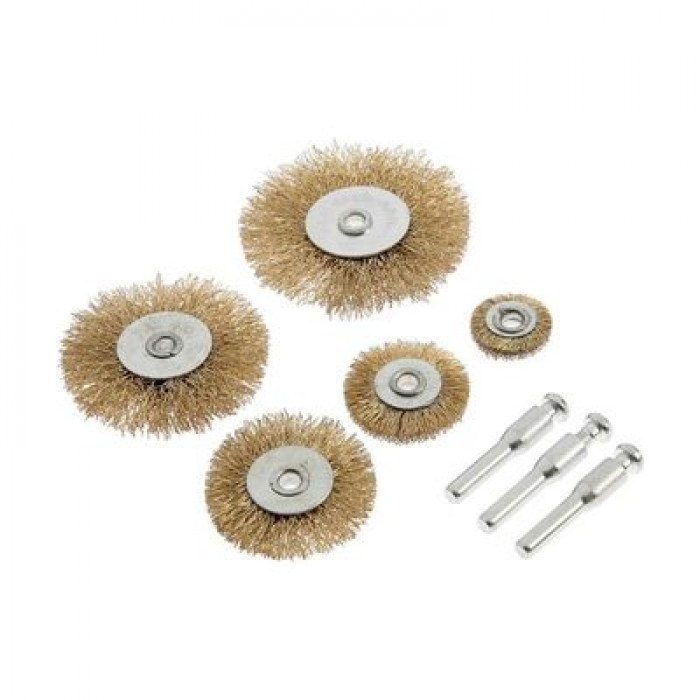 Набор щеток металлических для дрели ТУНДРА, плоские 25-38-50-63-75 мм, 5 шт. + 3 шпильки 1722232