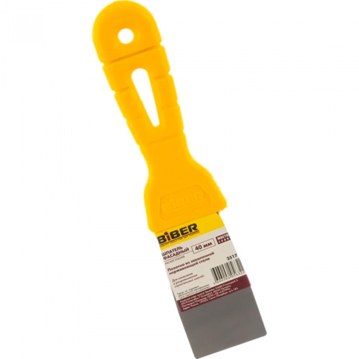 БИБЕР 35171 Шпатель фасадный МАСТЕР нерж. сталь, желтая рукоятка 40мм (12/240)