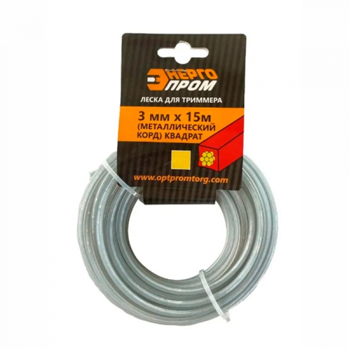 Леска для триммера "ЭНЕРГОПРОМ" (МЕТАЛЛИЧЕСКИЙ КОРД) КВАДРАТ/ 3,0ММ Х 15М /уп 160шт.