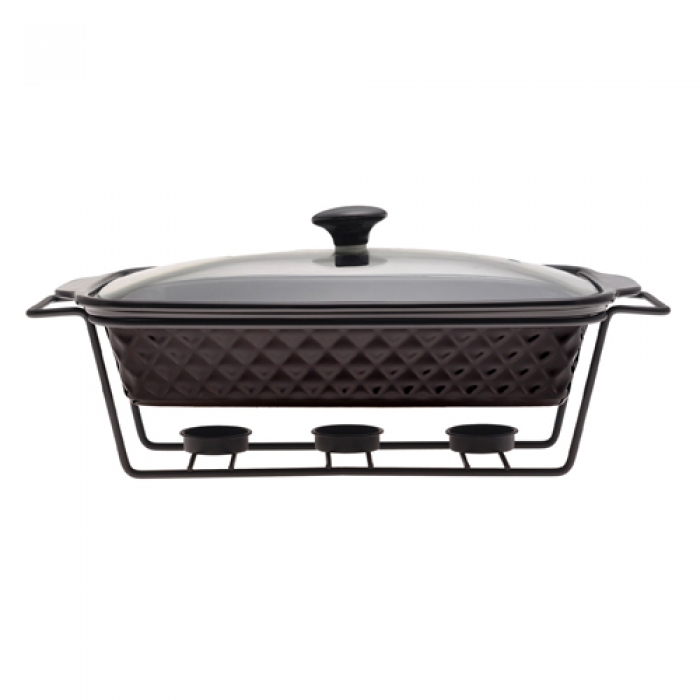Мармит керамический прямоугольный 36*21*6.5см 2л с подставкой (6421)