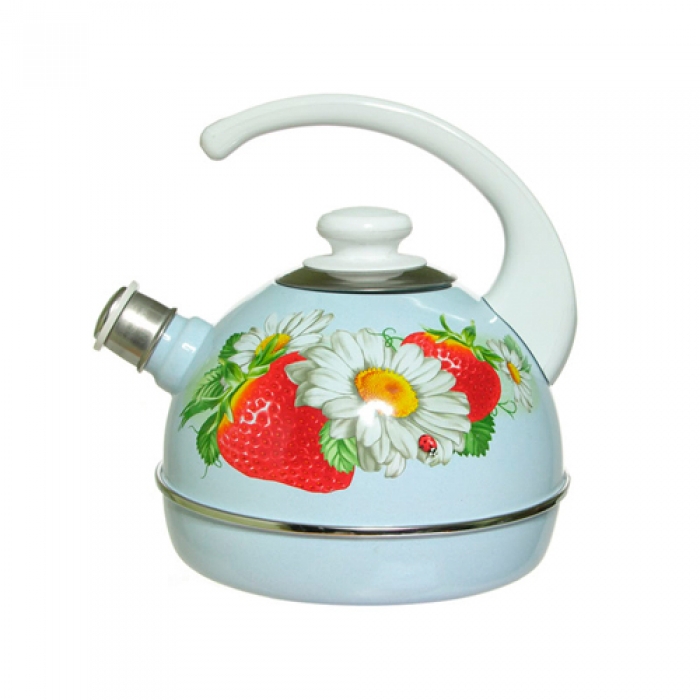 Чайник 3,5 л.(конс.ручка)-серо-голубой/клубника с ромашкой (декор- н.сталь на бел) Т04/35/09/05/Н03
