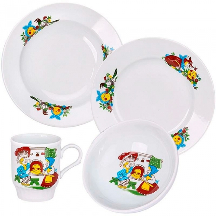 Набор посуды 4 предм.Веселый Колобок (т.200 мм мел., т.200 мм глуб., мис.350 мл, кр.210 мл Русское п