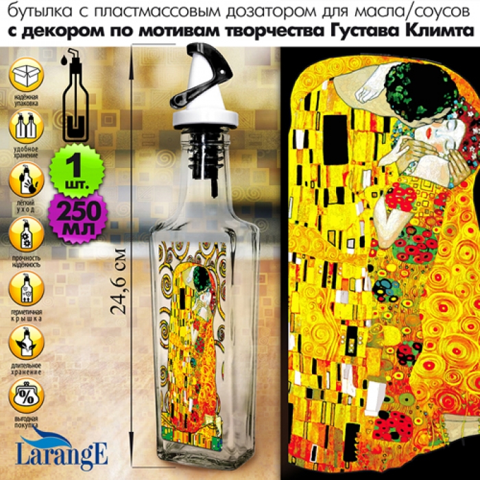 Бутылка с пл. самооткр. дозатором, ЧЁРНЫЙ, для масла/соусов 250 мл, серия "Густав Климт",