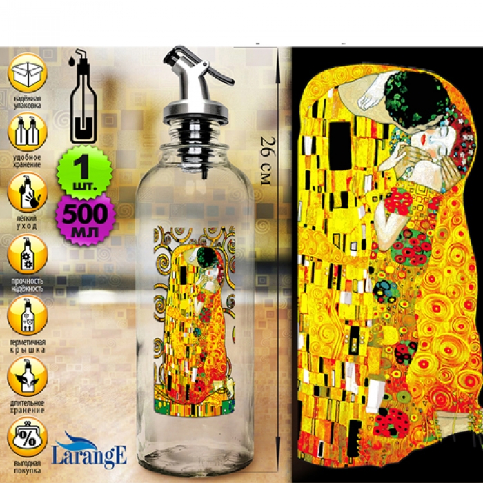 Бутылка цилиндр с пл. дозатором для масла/соусов 500 мл, сер. "Густав Климт", стекло арт.02020-08301