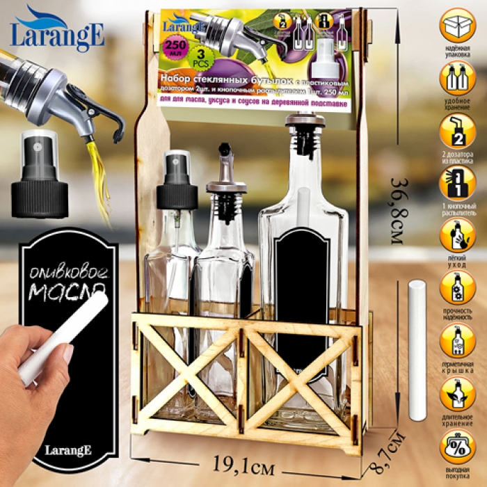 Набор бутылок стекло с пл. дозатором для масла/соусов, 500мл 1шт. и 250мл 1шт. кноп. арт.04700-00064