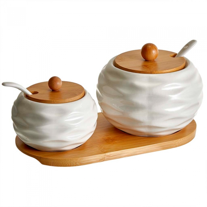 AK5-0006 Набор из 2 банок (250 мл и 450 мл) с ложками на бамбуковой подставке (18)
