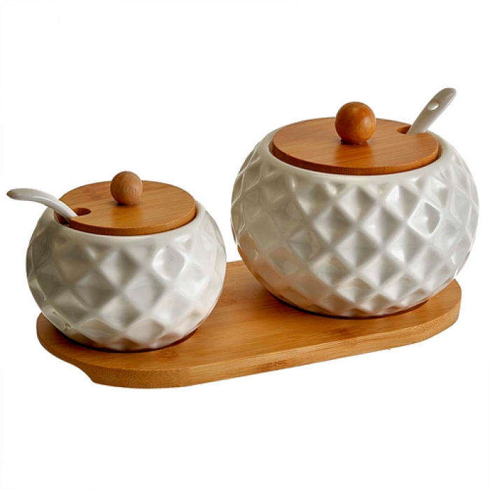 AK5-0010 Набор из 2 банок (250 мл и 450 мл) с ложками на бамбуковой подставке (18)