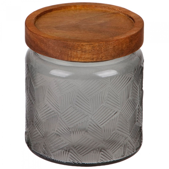 Банка из цветного рельефного стекла, AMARETTO, 500 мл с деревянной крышкой (акация) арт.108314