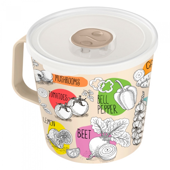 Контейнер-кружка "IZI-GO" с клапаном с декором, 750мл (светло-бежевый) (221140525/01) "ПРОФИТ ХАУС"