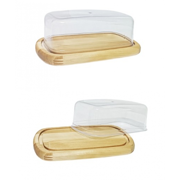 Масленка-сырница деревянная с пластиковой крышкой для сливочного масла и сыра 2720