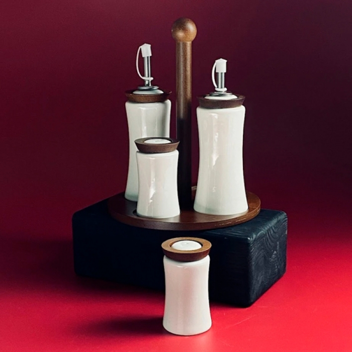 Набор солонок и бутылки для масла/уксуса 4пр. на подставке TROPICAL в под.уп.(х16)Фарфор арт.235-085