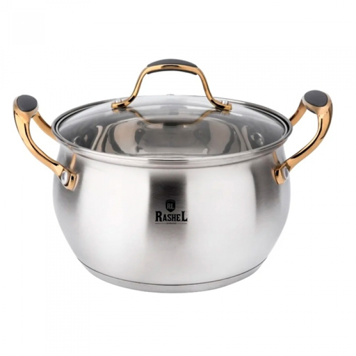 Кастрюли торговой марки "RASHEL" выполнены из высококачественной нержавеющей стали. Кастрюли удобны в использовании, за ними легко и просто ухаживать. Многослойное капсульное дно равномерно распределяет тепло и долгое время сохраняет достигнутую температуру, тем самым обеспечивает равномерный нагрев и равномерную подачу тепла во внутрь кастрюли.На внутренней поверхности корпуса кастрюли нанесена мерная шкала, которая помогает контролировать объем жидкости.#nbsp. Пища не пригорает благодаря равномерному распределению тепла по нижней части и стенкам, продукты с высоким содержанием влаги можно подвергать кулинарной обработке без воды и самое главное исключено образование канцерогенных веществ, так как для жарки можно не использовать растительное масло.Кастрюля оснащена двумя удобными ручками на заклёпках. Ручки выполнены из высококачественной нержавеющей стали. Клёпочный способ крепления ручек к корпусу посуды считается очень надёжным. Такое крепление не только невероятно прочное, но и не позволяет ручкам нагреваться.Подходит для всех видов плит.Более точную информацию о товаре уточняйте у операторов и консультантов торгового зала. Изображение может отличаться от представленного на витрине.