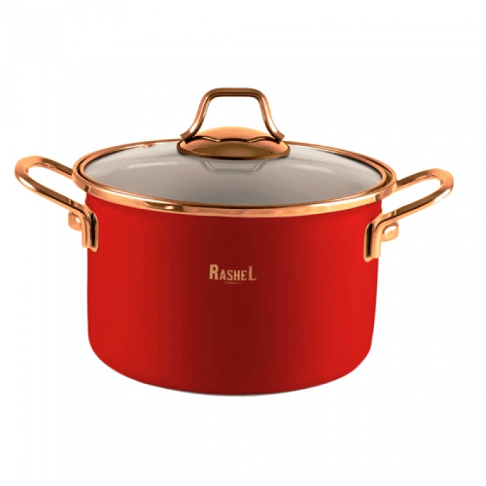 Кастрюля 4 л эмалированная со стекл. кр., ручка золото; цвет:красный (R-05520) "МАРУСЯ"