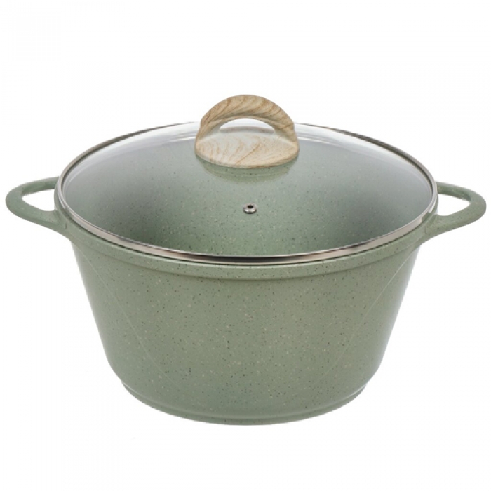 Кастрюля алюминий, антипригарное покрытие, 5 л, с крышкой, крышка стекло, круглая, Гурман, Мята, ГМк