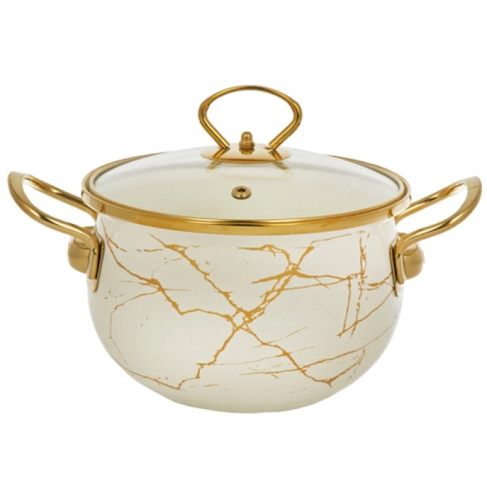 Кастрюля эмалированная сталь, 2.5 л, с крышкой, крышка стекло, Daniks, Белый мрамор, Y4-8963 (484343