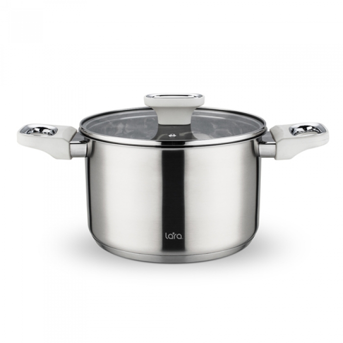 LR02-260 Кастрюля LARA (нерж) ФЛОРА 24x14,5см 6.5л, капсул индукци дно, Soft touch, стекл. крышка