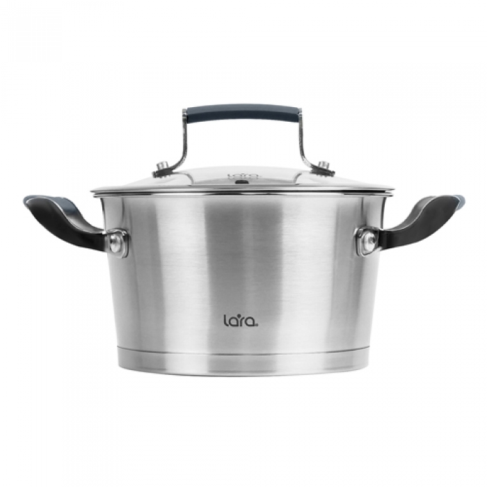 LR02-281 Кастрюля LARA (нерж) ВЕНЕРА 24x13см 5.5л, капсулированное индукционное дно, стекл. крышка
