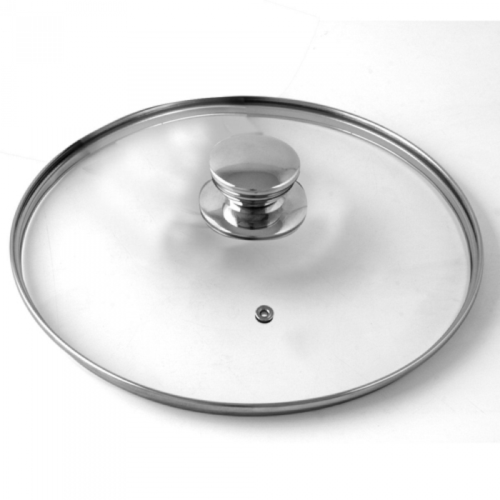 Крышка стекл.низкая, мет.обод, пароотвод, ручка-металл, d-30см, арт.Е5730