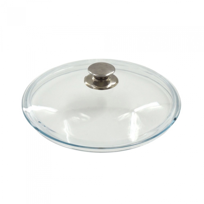 Крышка стеклянная литая 280мм,без обода, с ручкой из нерж.стали "Kukmara"