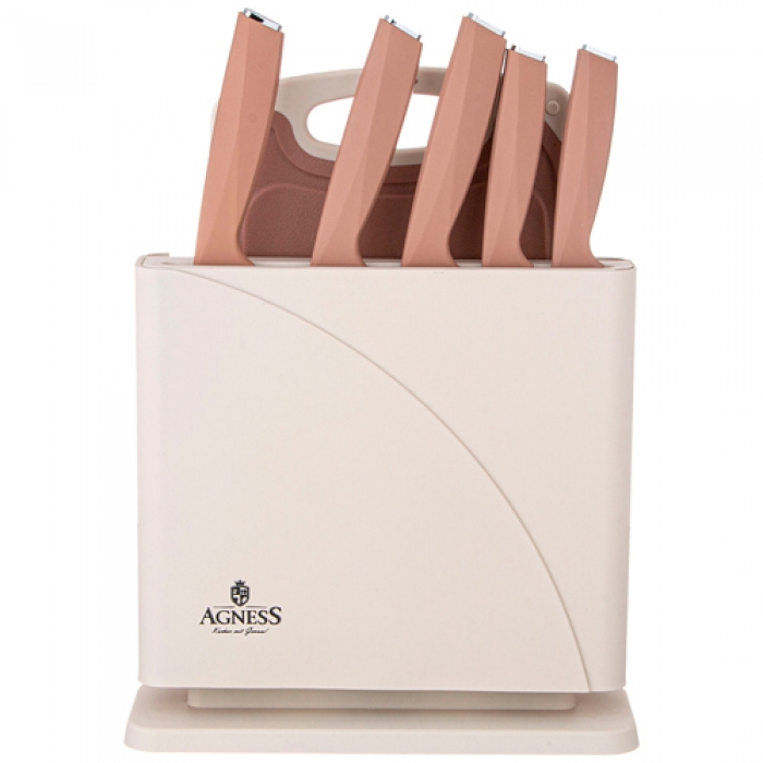 Набор ножей agness нжс на пластиковой подставке и разделочная доска, 7 пр. 911-764