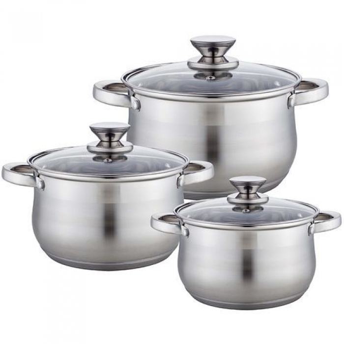 BE-614/6 Набор посуды из нерж.стали 6 пр. 2,1л, 2,9л, 3,9л со стеклянными крышками (4)