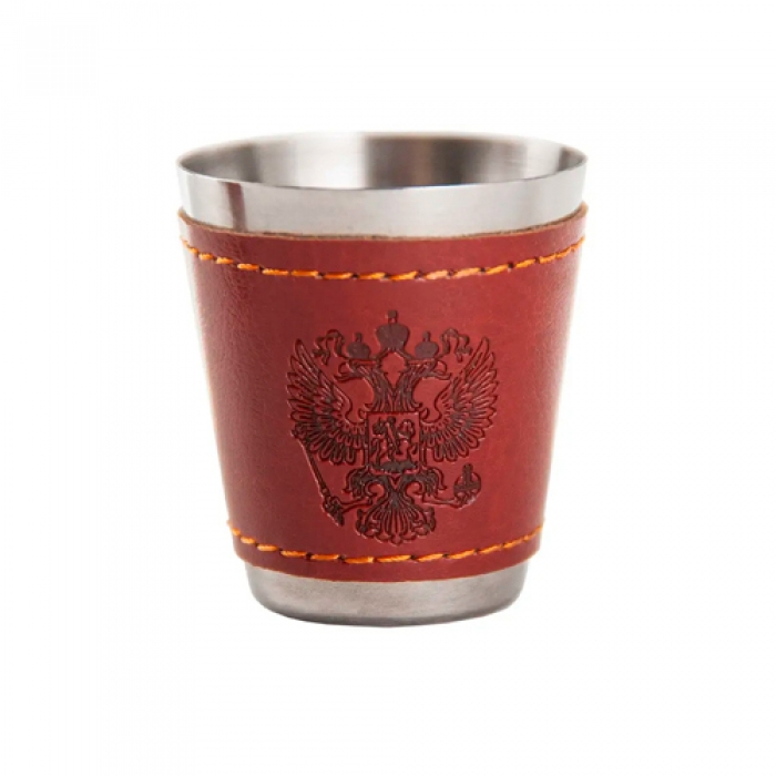 Стакан-стопка нерж в кожзаме герб (красн) 50*55 см 2К-012/3кмп арт.2К-012/3кмп