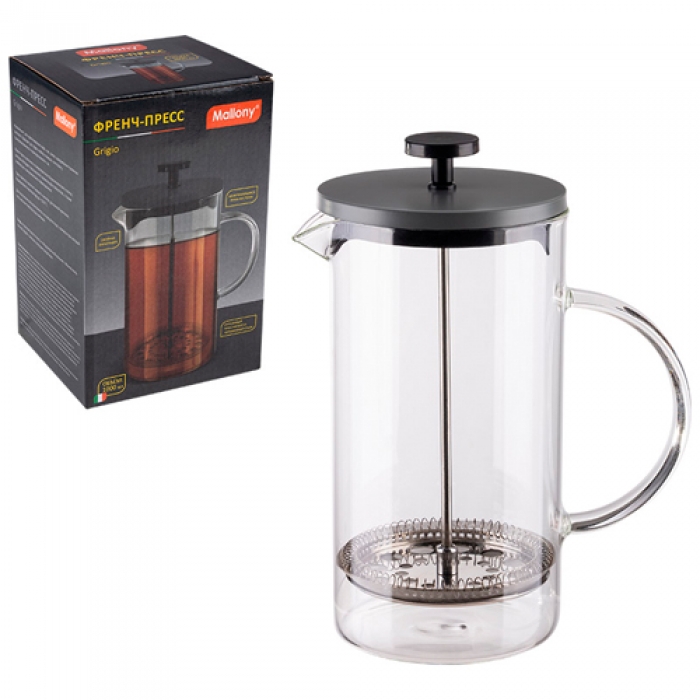Френч-пресс Grigio, объём: 1000 мл, со стеклянной ручкой/с окрашенной стальной крышкой арт.108388