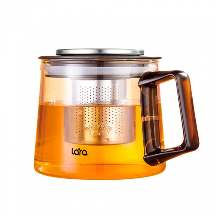 LR06-22 Заварочный чайник LARA <880мл> боросиликатное стекло, стальной фильтр, отделка хром