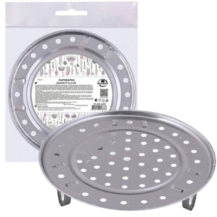 Пароварка незаменима для приготовления блюд диетической кухни. Используется для отваривания овощей, а также мяса, рыбы и т. д. Сохраняет в отваренных овощах натуральный аромат и витамины. Пароварка не занимает много места и проста в обращении. Пароварку можно ставить на дно кастрюли на ножки. Также использовать без них, разместив пароварку на краях кастрюли соответствующего диаметра. Может использоваться при сервировке стола. Во избежание прилипания продуктов к пароварке в процессе приготовления рекомендуем перед использованием смазать её поверхность растительным маслом или застелить пергаментным листом.Перед первым использованием и после каждого применения вымыть губкой с жидким моющим средством, сполоснуть проточной водой и просушить. Можно мыть в посудомоечной машине.Изготовлено: коррозионностойкая (нержавеющая) сталь. Диаметр 21,5 см, высота 5,5 см.Более точную информацию о товаре уточняйте у операторов и консультантов торгового зала. Изображение может отличаться от представленного на витрине.