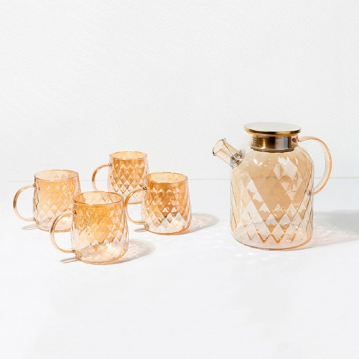 Набор из 5 предметов AROMA: кувшин 1,8 л + 4 круж. по 300 мл из рельефного цветного стек.арт.107859